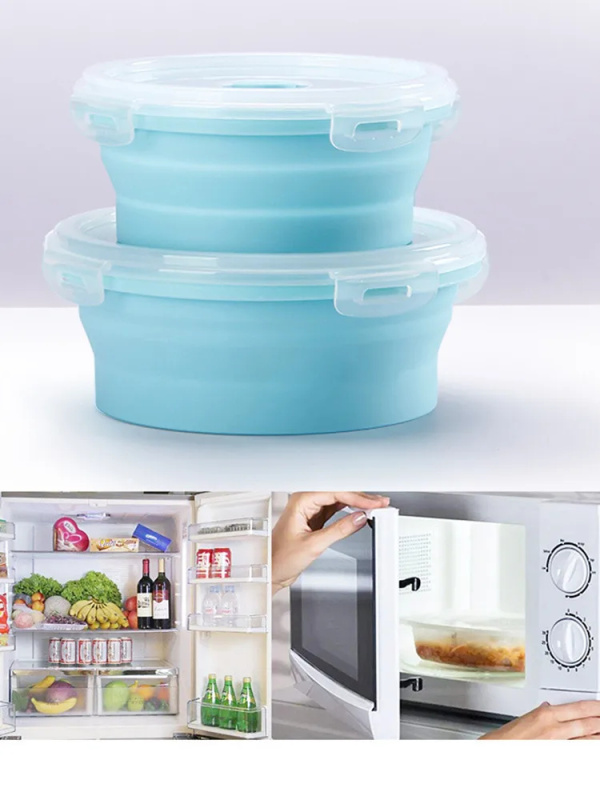 350-1200ml 圓形可折矽膠微波爐食品容器收納盒