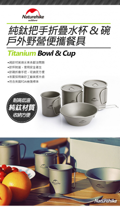 - 鈦碗折疊手把,收納更方便