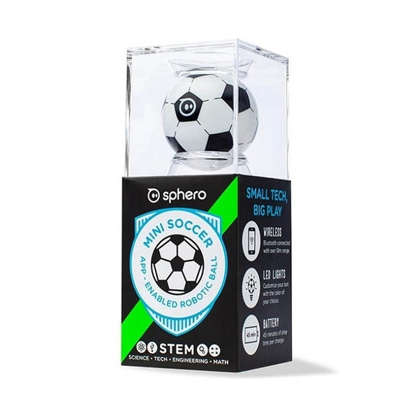 Sphero Mini Soccer 這個結合 app 功能的球型機器人外表小巧,內在蘊含無窮趣味。Sphero Mini Soccer 滿載出色技術,具備陀螺儀、加速度計和可自訂的 LED 燈光。下載 Sphero Play app,調好踢球 (Kick) 操控模式,手指滑動即可讓機器人向前滾動。你也可以輕點一下來停球,或是增加踢球動作旋轉角度,營造多一點火花。
