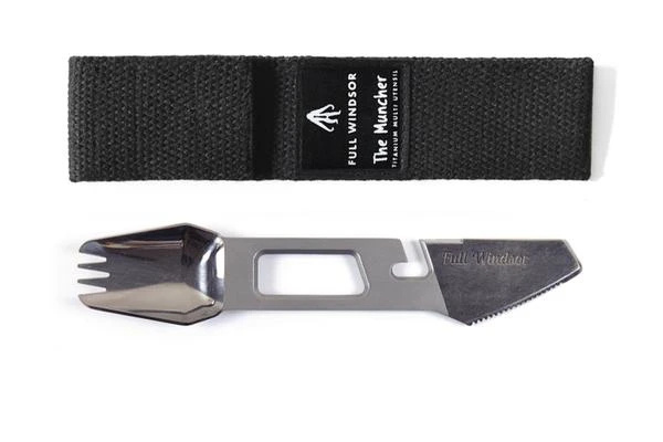 戶外免不了開各種罐子,那統統交給The Muncher好了。 The Muncher上集成了開瓶器和開罐器,還能當撬棒使用,喝瓶啤酒吃聽罐頭再好不過了。當然想要在野外下廚燒個菜,The Muncher也可以臨時充當齒刀和削皮器。 到了開飯時間,沒有餐具怎麼行。 The Muncher被設計成了匙叉的形狀,而鈦合金材質又相當易於清洗且不易生鏽。