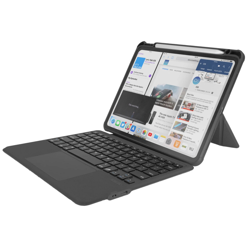 CAPDASE 觸控板鍵盤保護套。讓你即使使用iPad亦可擁有像筆記本電腦般的感覺,方便地打字。鍵盤上的內置觸控板使用了最新的手掌檢測技術,如妙控鍵盤。不會通過你的手掌觸摸觸控板的表面來激活。鍵盤和 iPad 外殼附有超強磁力和更強大的磁鐵。為了你的方便,它們可以分開並單獨使用。